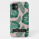 Tropical Pink & Green Palm Leaves Pattern & Name Case-Mate iPhone Case