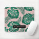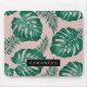 Tropical Pink & Green Palm Leaves Pattern & Name Mouse Mat