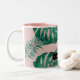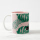 Tropical Pink & Green Palm Leaves Pattern & Name Two-Tone Coffee Mug
