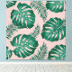 Tropical Pink & Green Palm Leaves Seamless Pattern Canvas Print