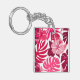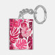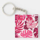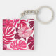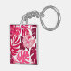 Tropical Pink Hibiscus and Monstera Leaves Pattern Key Ring