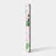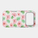 A cute tropical pink hibiscus iPhone case. This summer themed iPhone case features hand painted watercolor hibiscus flowers, monstera leaves on a cream background with white stripes.