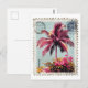 Tropical Pink Palm Postage Stamp Vintage Beach T‑S Postcard