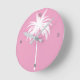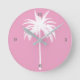 Tropical Pink Palm Tree Elegant Modern Round Clock