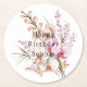 Tropical Pink White Orchid Flowers Birthday Round Paper Coaster