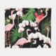 Tropical Plants Birds Coloured Illustration Fleece Blanket