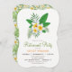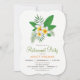 Summer Hawaiian Tropical Plumeria retirement party invitation. Invite features orange and white Plumeria flowers.