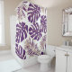 Tropical purple and gold leaves and monogram shower curtain. This lovely design features leaves of Split Leaf Philodendron (Monstera deliciosa) or Swiss Cheese Plant and palm leaves in purple with gold outline .