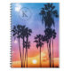 Tropical Rainbow Colour Palm Tree Sunset Monogram Notebook