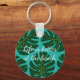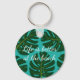 Tropical Monstera Deliciosa palm leaf floral print key chain. Round shape with trendy exotic leaves design. Elegant script typography template for name or fun quote. Cute wedding, retirement or birthday accessory or party favour gift idea for men and women. Pretty turquoise blue or custom background colour with personalised text. Add your own name, monogram initial letters, inspirational quote, funny saying, quotation etc. Classy summer decoration accessory for trendy beach destination wedding, engagement BBQ, birthday party, retirement etc. Vector art inspired by nature. Change quantity to get the cheap bulk price. Jungle rainforest island theme.
