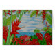 Watercolour featuring heliconia and anthuriums.