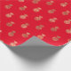 This wrapping paper features tropical faux gold foil pineapple pattern on red background.