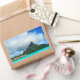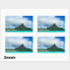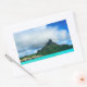 Rectangular photo sticker with an overwater resort in the fantastic turquoise lagoon of Bora Bora with Mt. Otemanu in the background in French Polynesia near Tahiti. Great destination for a honeymoon!