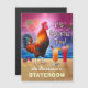 The chicken in this humourous magnet design knows what time it is - it's time to drink, of course, because it's COCKtail time! This silly tropical magnet is perfect for the stateroom door on a fun adult cruise. It shows a rooster crowing with a couple colourful beverages and a pair of sunglasses. The rooster stands on sand next to the ocean and a vibrant sunset. In the background, palm fronds and vivid fruit slices float opaquely in the sky with a dreamy look, because clearly this rooster has had a little too much too drink. Use the template fields to add your personalised text, such as your name and the word "stateroom." Please note: If you choose a different magnet size, you might need to "customise" and adjust the design to fit the new shape.