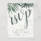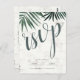 Tropical rustic palm leaf rsvp, watercolour invite postcard