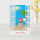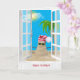 Tropical sandman with palm tree in window card