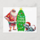 A Cute Tropical Santa Greeting Postcard With Santa, Surfboard, And Lguana