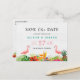 Tropical Save The Date | Hibiscus Floral Flamingo Announcement Postcard