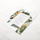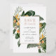 Foil pressed Wedding Save the Date for a tropical vibe. Featuring tropical orange flowers and lush greenery. Include your photo on the backside or delete and leave blank. Edit with your wording and select from three different foil colours including gold, silver and rose gold.