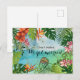 Share the joyful news of your destination elopement or tropical wedding with our original, hand-painted watercolor "We Got Married" announcement postcard. This unique landscape design features our signature lush frame of vibrant hibiscus, bird of paradise, and palms.