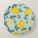 Tropical seamless pattern with yellow lemons round cushion