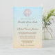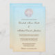 A beautiful seashell is featured on this beach themed wedding invitation.