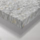 Close-up image of various ocean seashells, and starfish against a white sand background. Tropical beach scene, great design to decorate a bathroom or any room in a coastal or ocean theme.