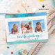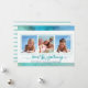 This watercolor Christmas holiday greeting photo card with 3 pictures coordinates with your beach, cruise, sailing or tropical vacation photos or you're sending wishes from your coastal, tropical or beach home. The greeting SEAS AND GREETINGS is a play on SEASON'S GREETINGS and in a modern, handwritten brush script typography in turquoise accented with starfish. PHOTO TIP: Choose photos with the subject in the middle and/or pre-crop into a similar shape as shown BEFORE uploading and/or use the CROP tool in EDIT to adjust the placement within the template area.) ASSISTANCE: For help with design modification or personalisation, colour change, resizing, transferring the design to another product or if you would like coordinating items, contact the designer BEFORE ORDERING via the Zazzle Chat MESSAGE tab or email makeitaboutyoustore@gmail.com.