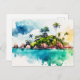 This is a beautiful painting of the Seychelles on a postcard. Seychelles is an archipelago of 115 islands in the Indian Ocean. The Seychelles Islands have a variety and abundance of sandy beaches, amazing tropical coral reefs, and rare animals on the islands! Makes a great product for every tourist of the famous travel destination.