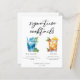 This tropical signature cocktails menu sheet features simple black typography above 2 drinks and their ingredients for your wedding bar. A cute Blue Lagoon and Mai Tai drawing add a cool flair to your bar menu. Complete with the couple's names and date for their reception.
