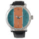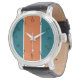 Combining colour and style, this watch features black numerals over an aqua, orange, and white-striped background. You'll set the standard for fashion whenever you wear this watch.