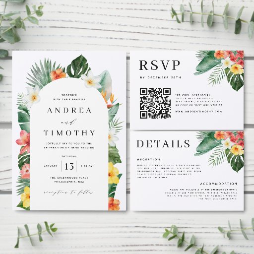 Tropical Summer Floral Greenery Wedding Photo Arch Save The Date
