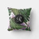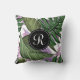 Tropical Summer Green Purple Leaves Monogram Cushion
