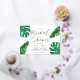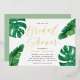 Invite guests for a chic summer bridal shower with these beautiful watercolor invitations. Design features your bridal shower details in modern lettering with gold foil calligraphy script accents, surrounded by watercolor illustrations of lush tropical monstera leaves and banana leaf greenery.
