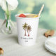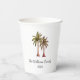 Tropical summer swim party paper cups, with a palm trees illustration design and customisable lettering. A great addition your pool party with a beach picnic theme.