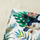 A beautiful and Modern summer seamless pattern featuring tropical watercolor leaves with parrots, tropical birds and pineapples in green, blue, yellow and orange on a white background. A stylish pattern for your summer,