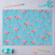 A cute pink flamingo pattern with blue background colour. Perfect tropical Summer design for anyone who loves birds, summer or the beach. Perfect gift for anyone and any age. Ideal present for a birthday, for Christmas or any other special occasion.
