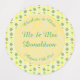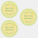 There is a yellow circle with white marbled patterns on it which contains customisable text so you can personalise this design.