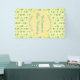 There is a yellow circle with white marbled patterns on it which contains customisable text so you can personalise this design.