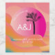 Tropical Sunrise Bold Pink Orange White Wedding Wine Label
