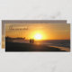 Tropical sunset beach wedding invitation template. When you prefer the intimate setting to your wedding day... a couple walking into the sunset on the beach