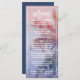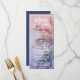 This tropical sunset dinner menu card is perfect for a destination or beach wedding. The design features a stunning pink, purple and blue watercolor sunset complete with a palm tree blowing in the breeze. This menu can be used for a wedding reception, rehearsal dinner, or any event.