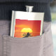 The product is a good size and came exactly as it was pictured. The lid is not attached to the flask, which could be dangerous on drunken nights... The print came out surprisingly well and looks very sharp. Would definitely recommend.