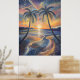 Embrace the serenity of a tropical sunset with this mesmerising pointillist artwork. Featuring two graceful palm trees silhouetted against a vibrant sky, the glowing sun reflects over tranquil waters and a dynamic, swirling shoreline. The intricate dot technique creates depth, warmth, and a sense of movement, capturing the magic of a tropical paradise. Perfect for art lovers and decor enthusiasts, this unique design adds a touch of elegance and relaxation to any space.