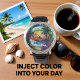 Bring the breathtaking beauty of a tropical paradise into your home with this stunning wall clock. The vibrant artwork captures a serene beach sunset, where golden hues meet the deep blue of the ocean, adorned with graceful waves and swaying palm trees. This decorative timepiece embodies the essence of a perfect vacation, creating a relaxing seaside ambiance in any room. Its artistic design and colourful illustration make it a captivating focal point, perfect for coastal homes or for those who dream of island getaways. A true art piece for your wall, it offers a sunny, summer vibe year-round.