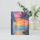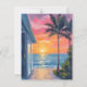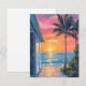 Tropical Sunset Palm Beach Ocean Watercolor Painting Card