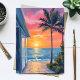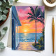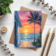 Tropical Sunset Palm Beach Ocean Watercolor Card