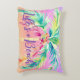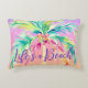 This accent pillow is truly beautiful! Tropical shades of an island sunset is a summer staple. Add a colourful palm tree and your name or message and it becomes the most beautiful beachy outdoor accent. Multicolor soft water colour pastels.