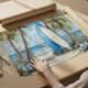 Bring easy, beach house calm to your walls with this Tropical Surfboard Coastal Art Print from the Nautical Blue collection by TinkPrints. A bold blue surfboard, swaying palms, and soft sandy neutrals create a fresh coastal focal point that works beautifully in bathrooms, bedrooms, and entryways. Designed to coordinate with your Nautical Blue palette, this print pairs well with blue and white decor, natural textures, and light wood accents for a clean, pulled together coastal look.