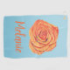 This exquisite watercolor of a delicate peach-coloured rose, set against a soft blue background, captures the timeless beauty of nature with grace and elegance. The warm peach tones of the rose, a symbol of sincerity, friendship, and gratitude, make it a heartfelt gift for someone special. The contrast between the pastel orange peach bloom and the serene blue backdrop creates a striking, yet serene image that radiates both femininity and strength.